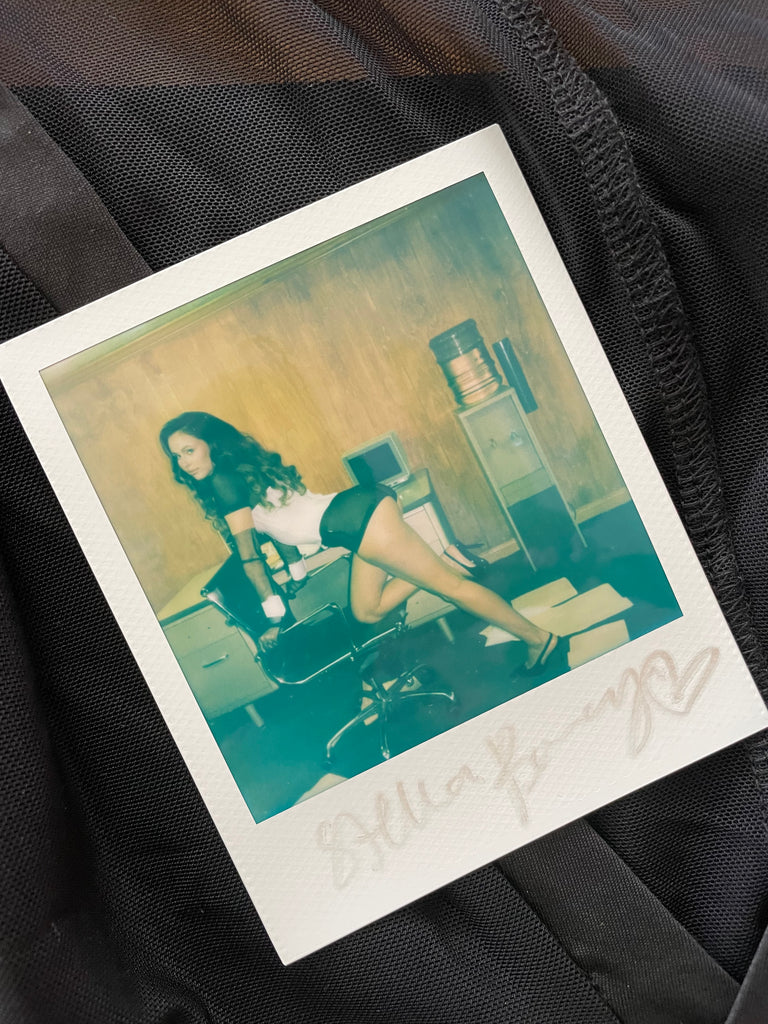 Campers it is official, I have toooooo much wardrobe! I've kept soooo much from all our amazing magazine shoots because I love having these one offs. But I am officially at max space. So dropping some of my favorite wardrobe as incredible, ONE OF A KIND, wardrobe bundles! Some will have original print issues or signed polaroids to go with the wardrobe! This bundle includes Stella Barey's WORN, NOT WASHHED wardrobe from our most recent, upcoming, "WET" Issue photo shoot with one of the only SIGNED polaroids of her wearing it!